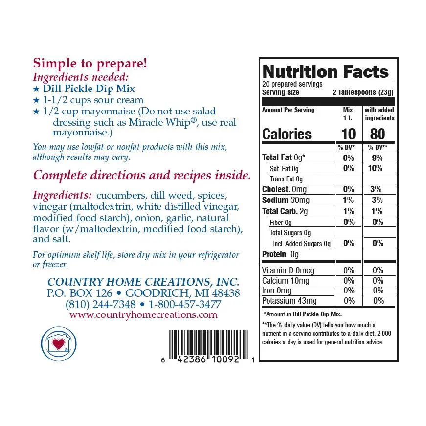 This recent addition to our line of simple gourmet mixes is full of pickle flavor and wholesome pickle pieces. It's amazing with potato chips and green veggies like celery and broccoli.Â